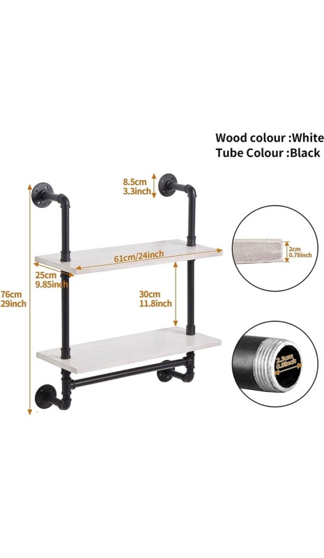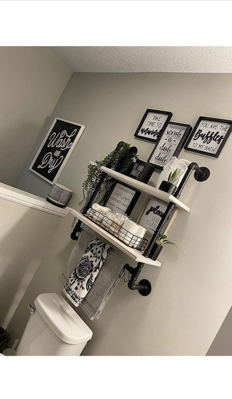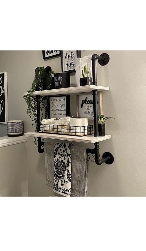 Industrial Pipe Floating Shelves - 20" w-Solid Wood Planks and Towel Bar-Rustic