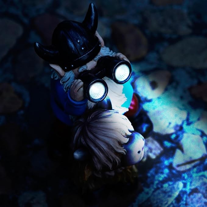 Joint Honglin Garden Gnome Statues Resin Gnome Sitting on Highland Cow Solar Lights Outdoor Telescope Gnome Gifts for Yard, Patio Decor (Cow Gnome)
