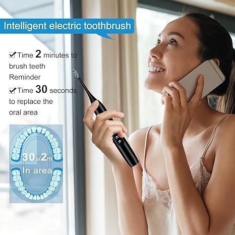 kingheroes Electric Toothbrush Set, Comes with 8 Brush Heads & Travel Case,4 Modes with 2 Minutes Built in Smart Timer, One Charge for 60 Days, 42000 VPM Motor (Black)