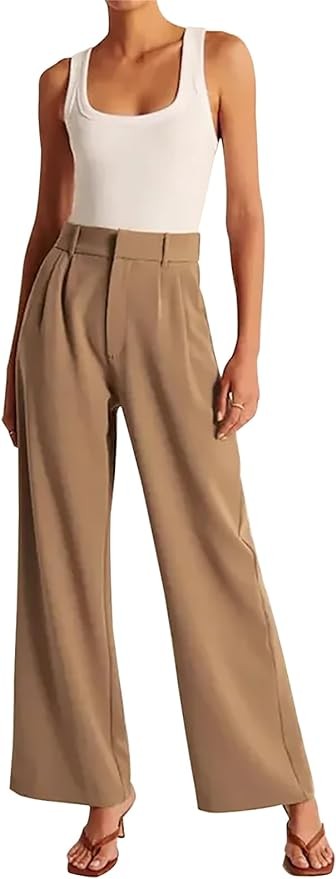 KUNMI Women's Wide Leg Pants Work Business Casual Loose High Waisted Dress Palazzo Flowy Trousers