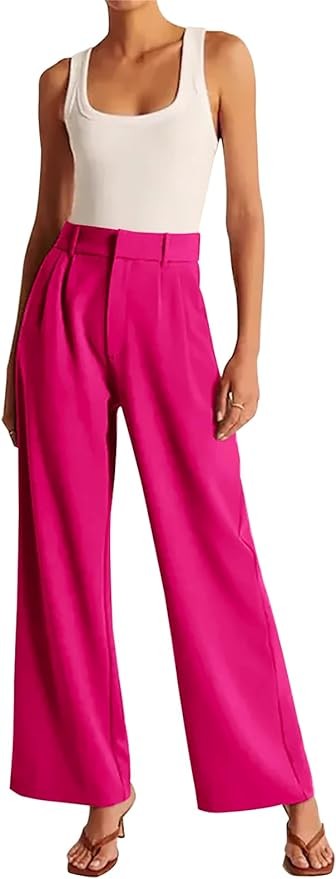 KUNMI Women's Wide Leg Pants Work Business Casual Loose High Waisted Dress Palazzo Flowy Trousers