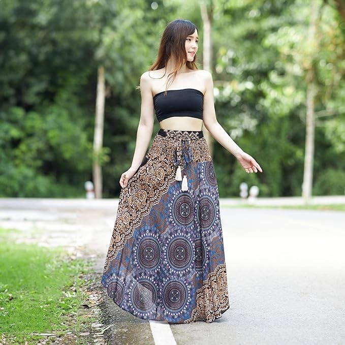 Bohemian hippie style skirt have comfortable elastic waist with drawstring and tassel. Different sizes of boho maxi skirts for women offers two sizes in waist and also short and long length option as 37 inches and 40 inches hem.