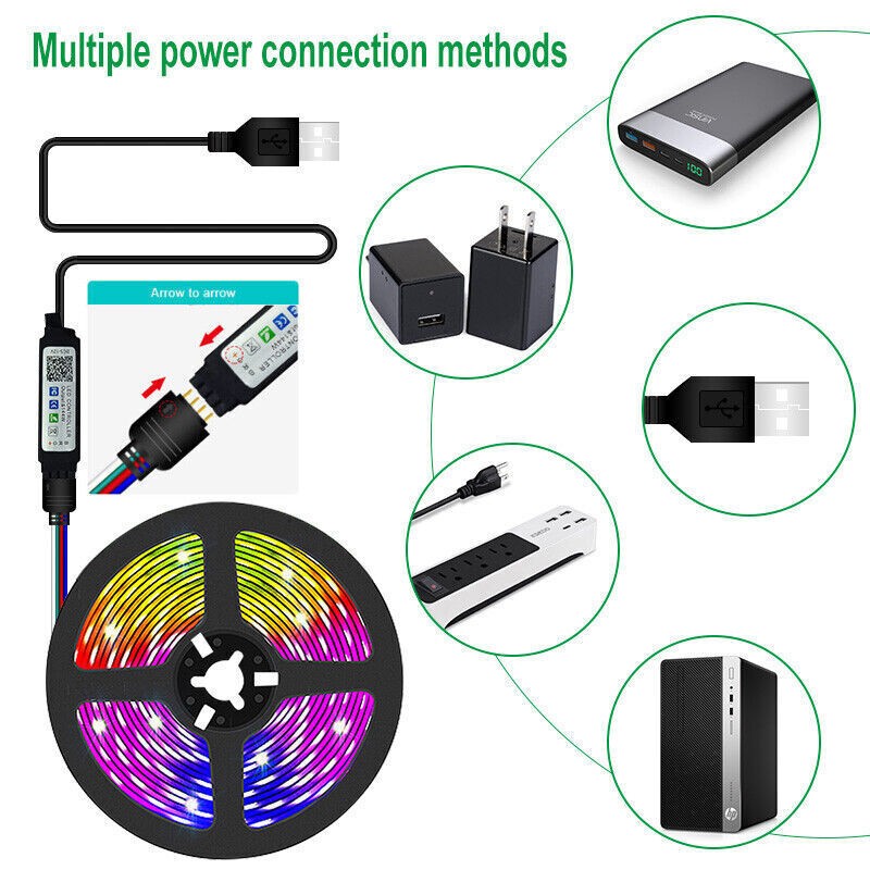 LED Strip Light TV Backlight Rooms Bar 5050 RGB USB 1-100ft 50ft Bluetooth Tapes
