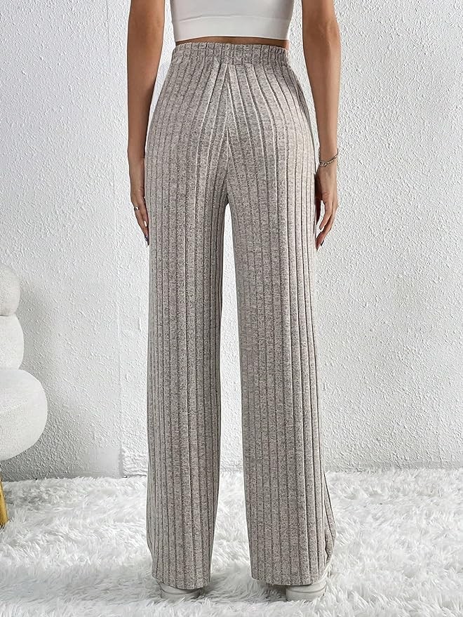 • Feature: Ribbed knit, straight leg, elastic waist, drawstring waist, tie front, solid color, lounge, workout, casual style, long pants for women