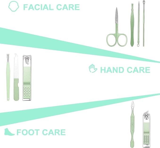 MANICURE SET: Professional Manicure Kit contains 9 kinds of care tools for hands, feet and face, which can meet your personal care needs, and it is more economical and affordable than buying it separately.