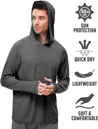 UPF 50+ Protection--- Our men's hoodie shirts with thumb holes design offer superior sun protection with a UPF 50+ rating, ensuring your skin is protected from harmful UV rays while enjoying outdoor activities like fishing, hiking, swimming, running, surfing, and more.