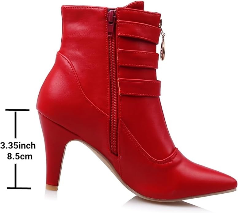 Ankle Boots for Women :Elevate your style with these women's pointed toe buckle heel boots.These ankle boots, a convenient zipper detail that easy on and off. dress boots for women are complete with a comfortable rubber sole.