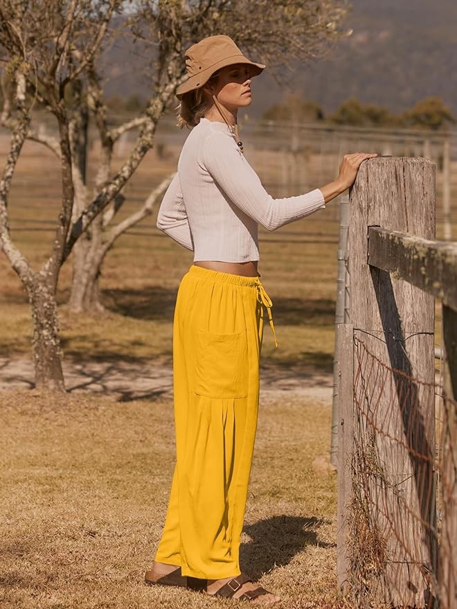 Unique Design: Wide leg tapered pants, high waisted, elastic waistband, adjustable drawstring, big side pockets, ankle length, casual and relaxed fit, solid color, slouchy palazzo pants, light colors are lined.