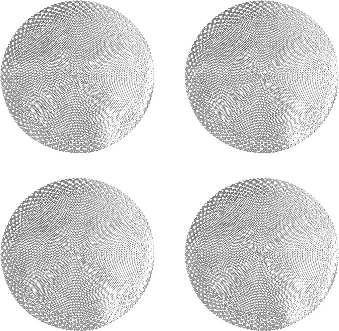 Metallic Placemats Set of 4 - Easy to Clean, Washable Decorative Place Mats for Kitchen and Dining Table - Non-Slip Round Table Mats - Dinnerware & Accessories - Dining Table Centerpiece Decor, Silver