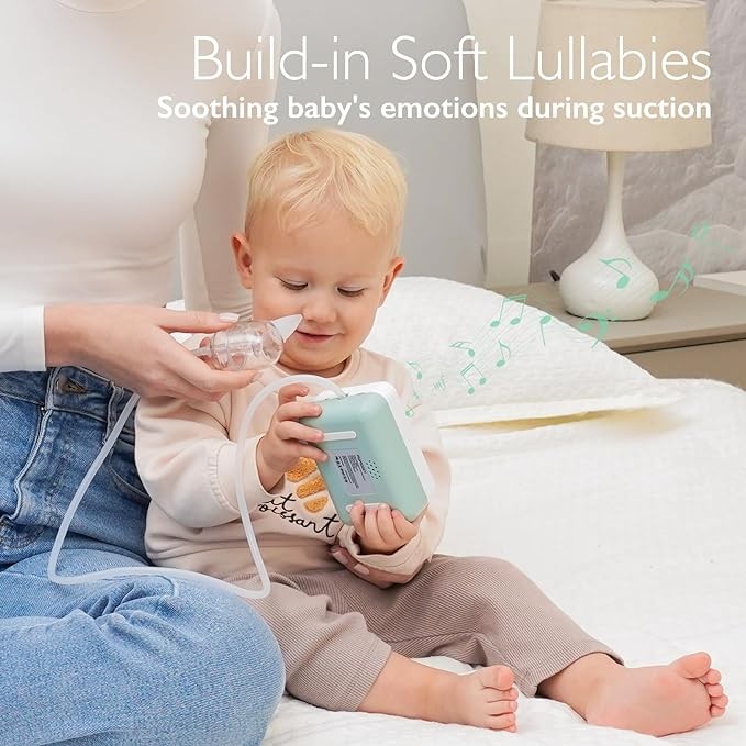 • Baby Nasal Aspirator - Momcozy nasal aspirator for baby, electric rechargeable baby nasal aspirator, baby nose sucker, booger sucker, release baby’s stuffy nose