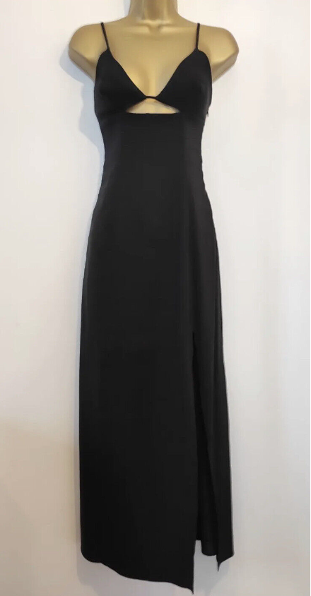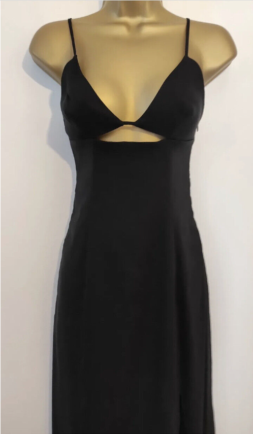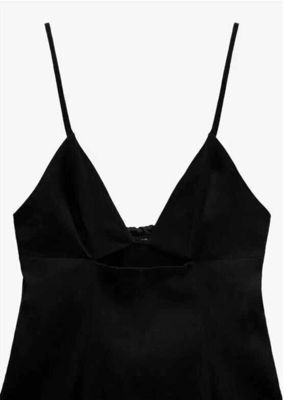 New Zara Black Linen Blend Dress With Cut Out Detail Size Small