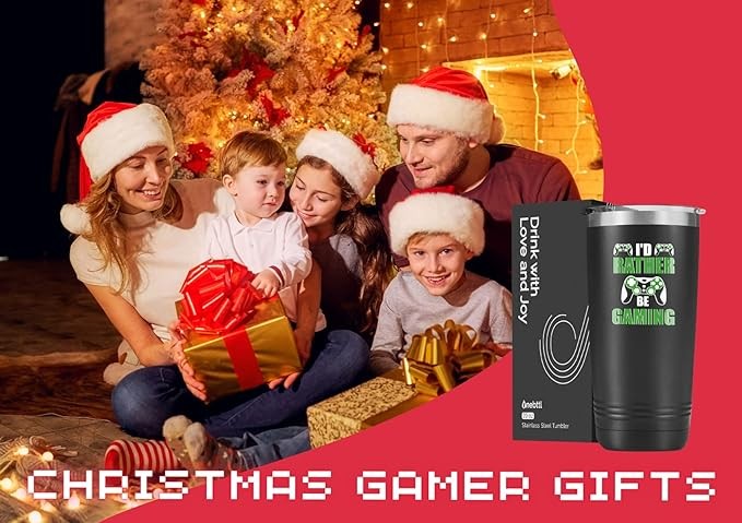 Onebttl Gamer Gifts for Men, Gaming Mugs, Boys, Teen, 20oz Stainless Steel Tumbler, Gifts For Christmas, Birthday- I‘D RATHER BE GAMING