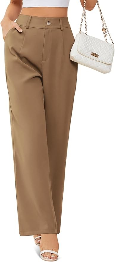 onlypuff Womens Wide Leg Pants High Waisted Slacks Straight Long Work Business Trousers with Pockets