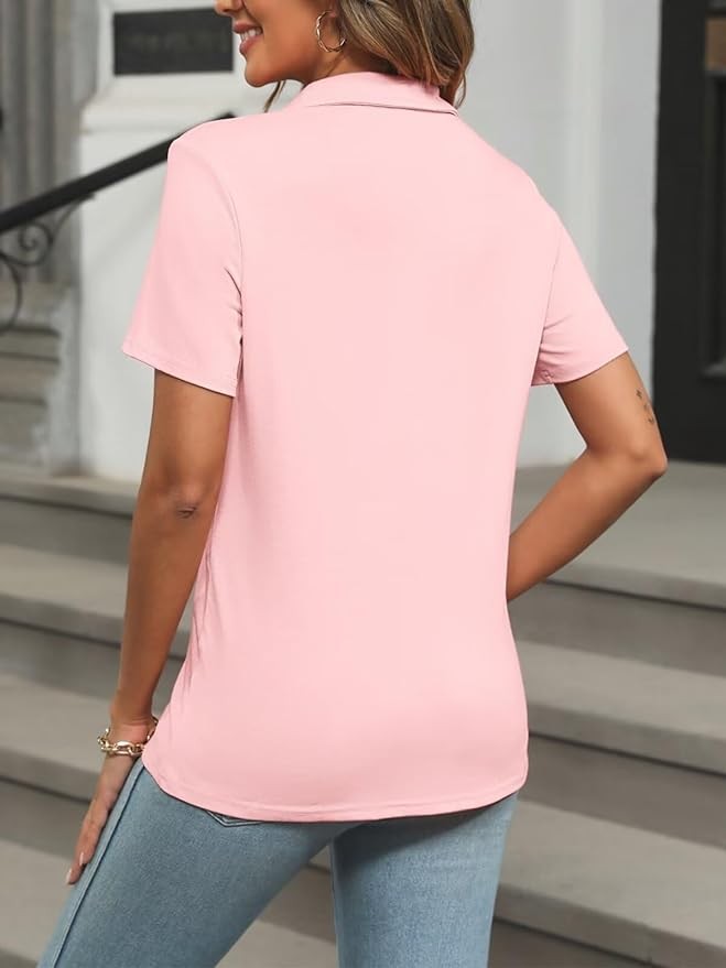 Match:collared shirts for women,Easy to pair with your pants,jeans,skinny leggings for a trendy look,Whether it's for daily wear or special occasions, Polo shirts can showcase a personal style that combines fashion and comfort. Polo shirts are an indispensable fashion item for you.