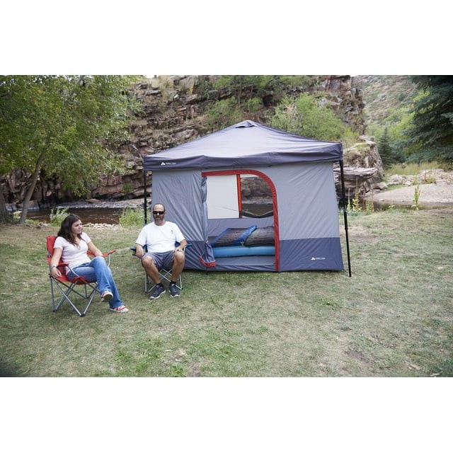 Be comfortable and safe even when sleeping in the outdoors when you have the Ozark Trail 6-Person Connect Ent for a Straight-leg Canopy (SOLD SEPARATELY). This 100 sq ft. tent comfortably fits 2 queen air beds or up to 6 sleeping bags, so you can have your family or group of friends under one roof. The Ozark Trail 6-Person Connect Ent easily sets up in about 10 minutes by clipping into your 10 ft. x 10 ft. straight-leg canopy (SOLD SEPARATELY) to convert it to a roomy sleeping area. The 98 in. center height means even tall members of your crew can stand up in your tent. Four windows and a mesh roof provide plenty of ventilation. The Ozark Trail 6-person Connect Ent comes with a sewn-in floor to help keep bugs out. Set your 10 ft. x 10 ft. straight-leg canopy up for a backyard barbecue or while camping, and then convert it into your sleeping area with the Ozark Trail 6-Person Connect Tent to enjoy an evening in the outdoors. Ozark Trail 10 x 10 Straight-Leg canopy sold separately.