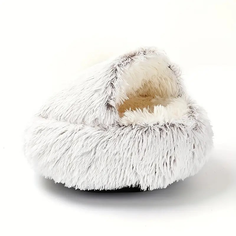 Plush Round Hooded Pet Bed, Warm Dog Bed For Small Dogs, Fluffy Soft Cat Bed, Donut Pet Cushion