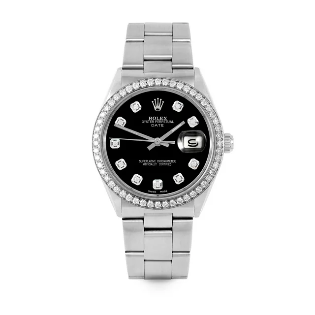 Pre-Owned Rolex 1500 Men's 34mm Date Wristwatch Black Diamond (3 Year Warranty) (Good)