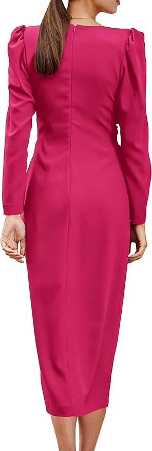 • EYE-CATCHING DESIGNS: Long Sleeve Dress For Women Fall/ Puffy Sleeve Dress/ V Neck Dress For Women/ Maxi Dress With Slit/ Long Dress For Women Casual/ Elegant Dresses For Evening Party/ Twist Front Dress/ Womens Fall Fashion 2024/ Ruched Dress