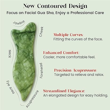 Rena Chris Gua Sha Facial Tools - Acupressure & Gua Sha, Jade Gua Sha Stone for Face Massage, Jawline Sculpting and Puffiness Reducing, Skin Care Gift with User Manual