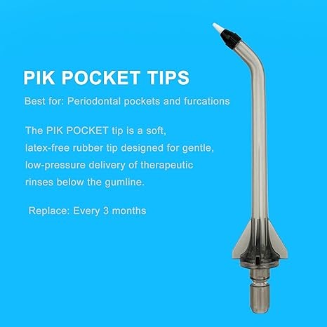 • 【Periodontal Tips】A soft rubber tip designed for gentle, low-pressure delivery of therapeutic rinses below the gumline.To alleviate the symptoms of gingivitis, periodontitis, periodontal pocket depth reduction.