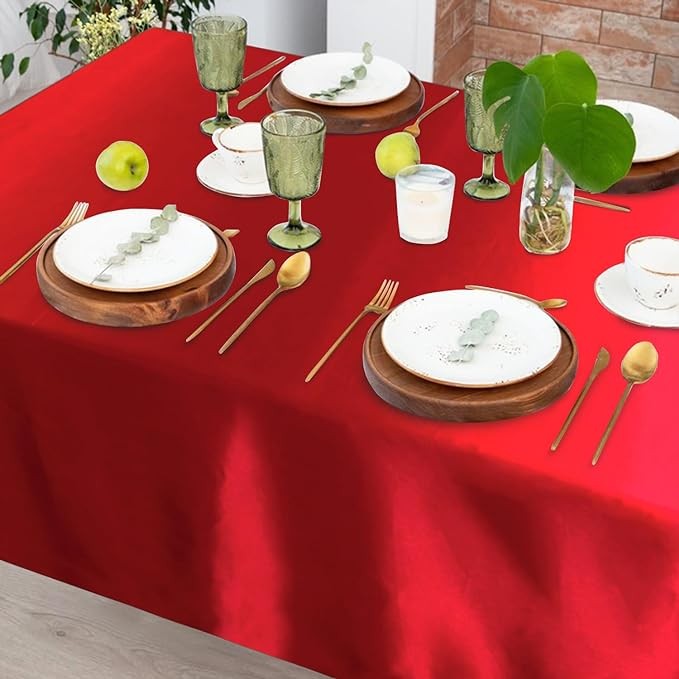• Size & Color - Satin Table Cover:With 4 packs of red satin tablecloth in each package, each satin rectangle tablecloth is about 58 inch wide and 108 inch long, large enough to decorate a table accommodating about 8-10 persons, providing a comfortable and elegant dining environment for your guests.
