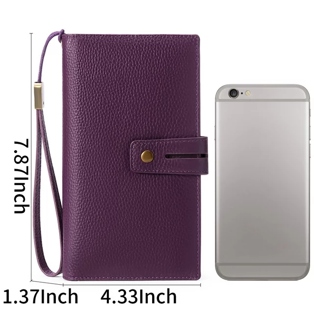 【LARGE CAPACITY OVERSIZE WALLET】17 credit cards, 2 ID windows, 1 passport pocket (can fit 2-3 passports), a removable checkbook cover with 1 pen holder(can use as a checkbook wallet), An exterior zippered pocket reveals 2 additional pockets for storing cash, cellphone, and a zippered coin pouch.