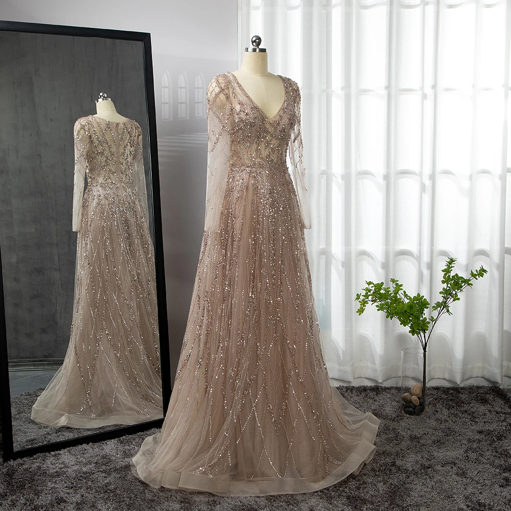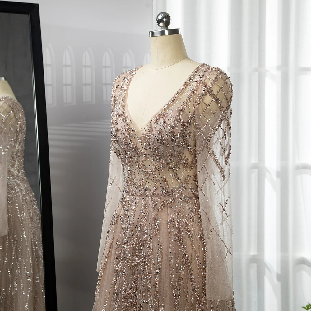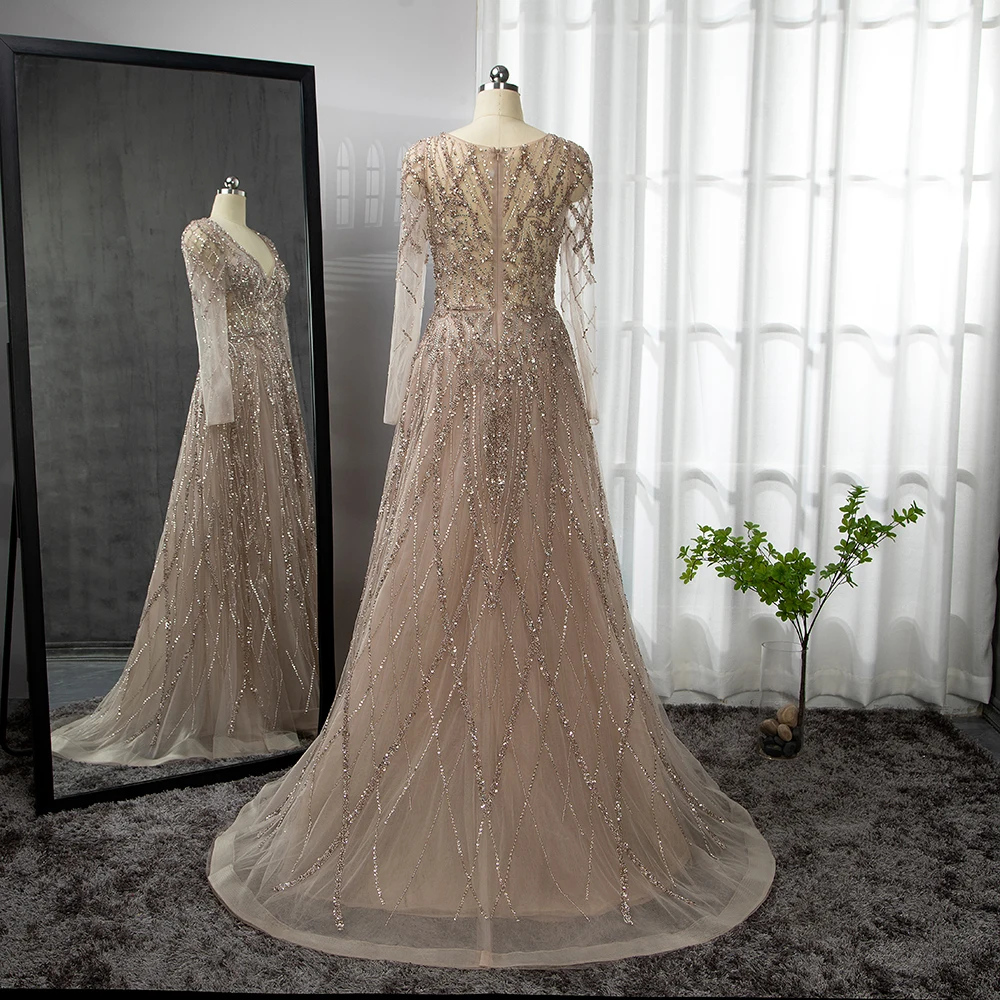 Serene Hill Arabic Turquoise A Line Sexy Sweetheart Long Sleeves Luxury Beaded Party Dresses Formal Women Evening 2022 CLA71793