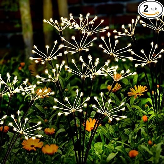 Solar Garden Lights 2 Pack Twinkling Solar Firework Lights with 2 Modes 120LED, Solar Lights for Outside Yard Pathway Garden Decor Outdoor Waterproof, Gardening Gifts for Women Mothers Day, Warm White