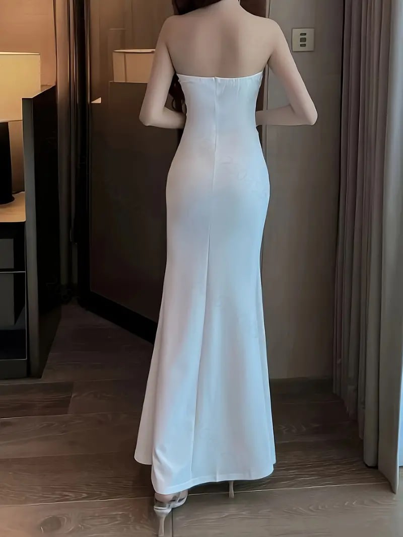 Solid Cut Out Split Thigh Tube Dress, Elegant Sleeveless Strapless Bodycon Dress, Women s Clothing details 1Solid Cut Out Split Thigh Tube Dress, Elegant Sleeveless Strapless Bodycon Dress, Women s Clothing details 1