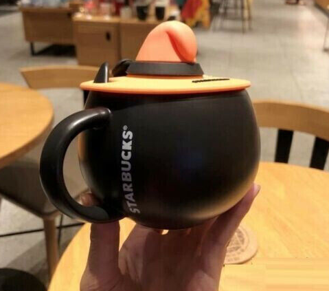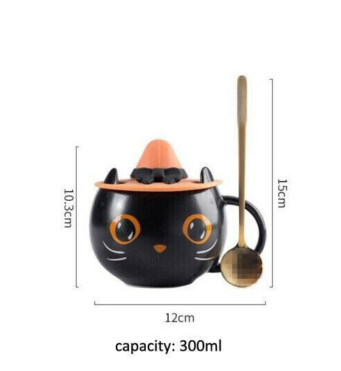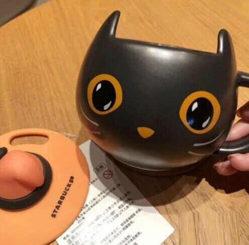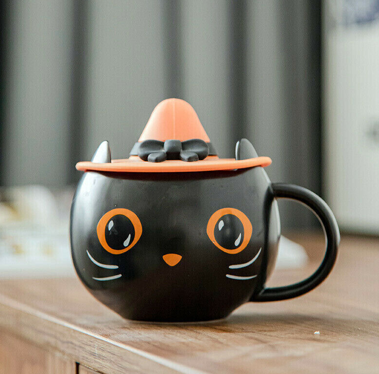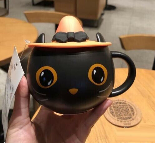 Starbucks Black Cat Cup W/ Witch Cap Lid&Spoon Water Mugs Halloween
