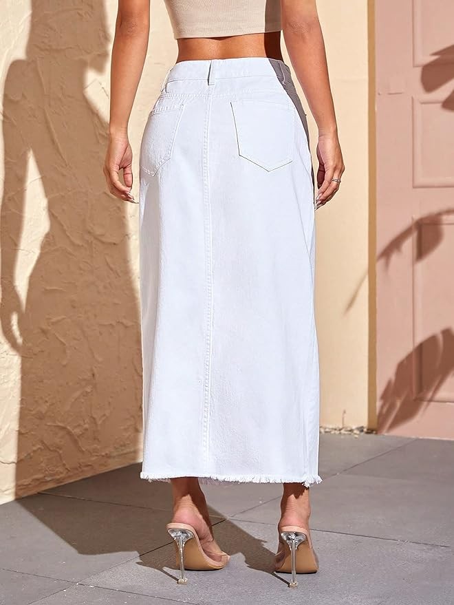 SweatyRocks Women's High Waist Split Thigh Raw Hem Denim Skirt Long Jean Skirt with Pocket