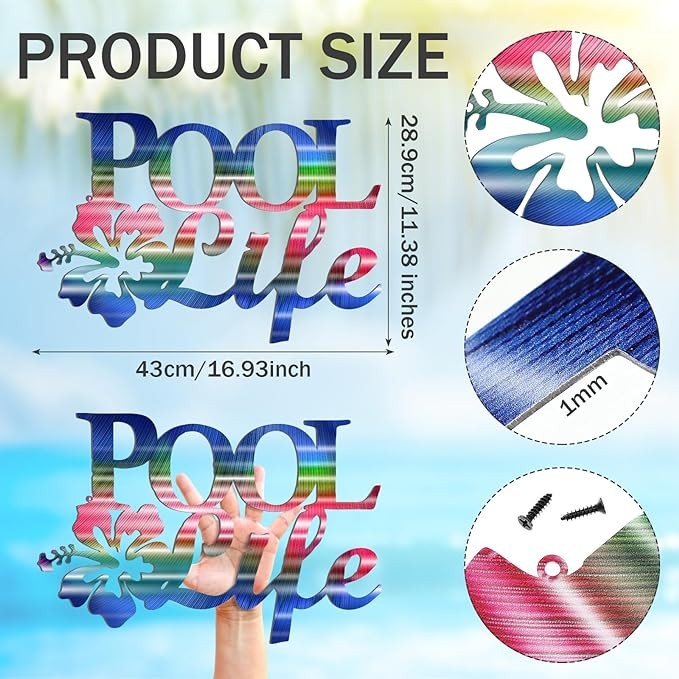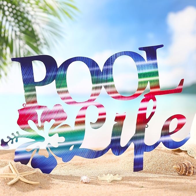 Tandefio Pool Life Metal Wall Art Decor Hibiscus Flower Coastal Metal Wall Art Tropical Outdoor Decor Swimming Pool Sign for Summer Beach Patio Living Room Bathroom Boat Decorations
