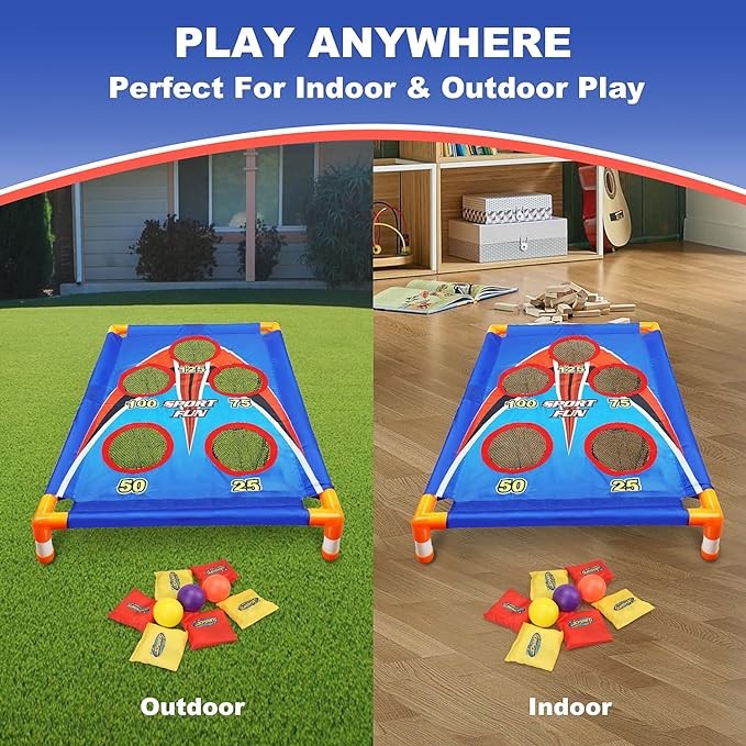 • ⚾ COMPREHENSIVE SKILLS IMPROVEMENT - With this kids outdoor games cornhole toss game, kids can reinforce simple math skills, hand-eye coordination, and team spirit while having their indoor cornhole set game set fun.