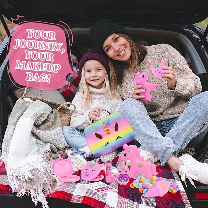 【Portable and Travel-Friendly】- The compact and lightweight design of our makeup kit makes it perfect for on-the-go entertainment. Whether it's a family trip or a playdate, your child can easily carry their favorite beauty essentials wherever they go.