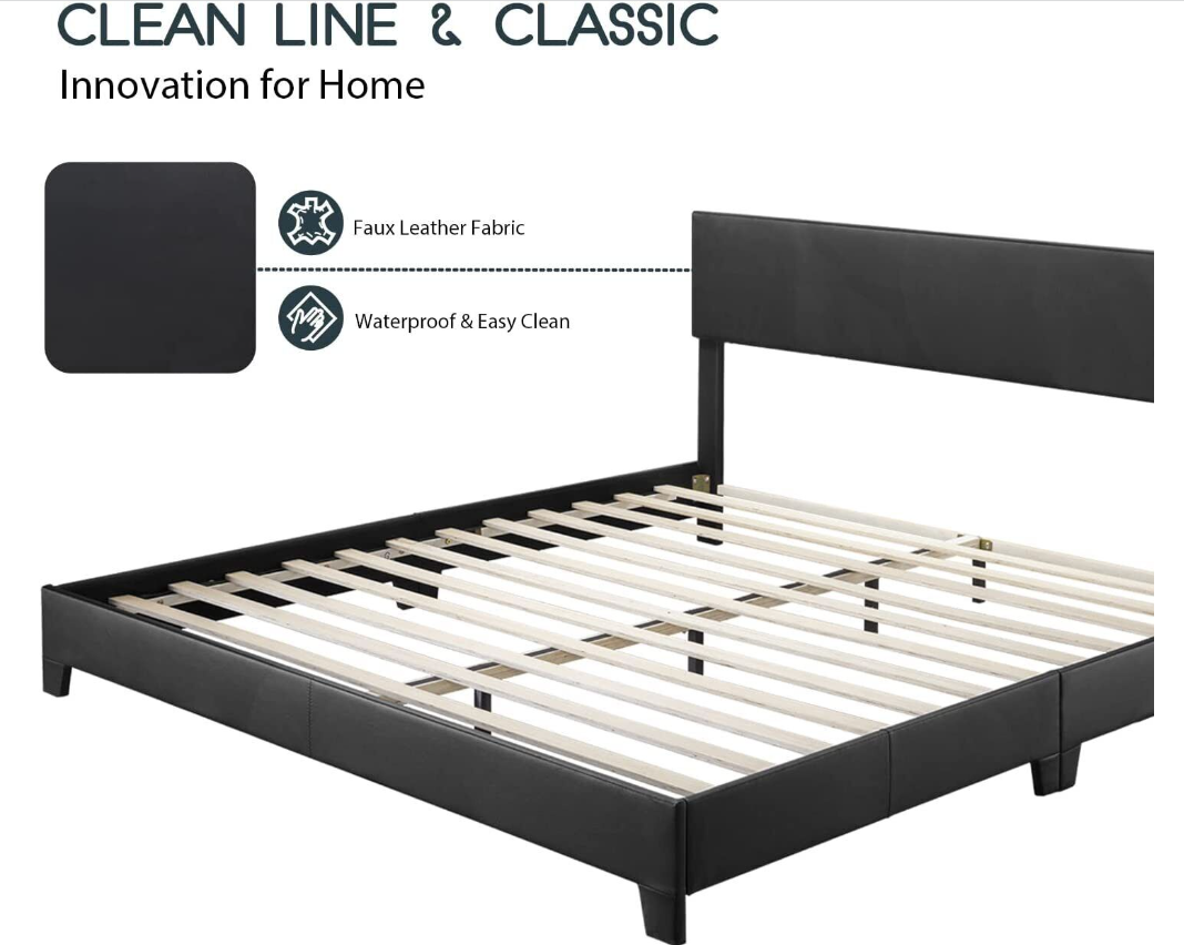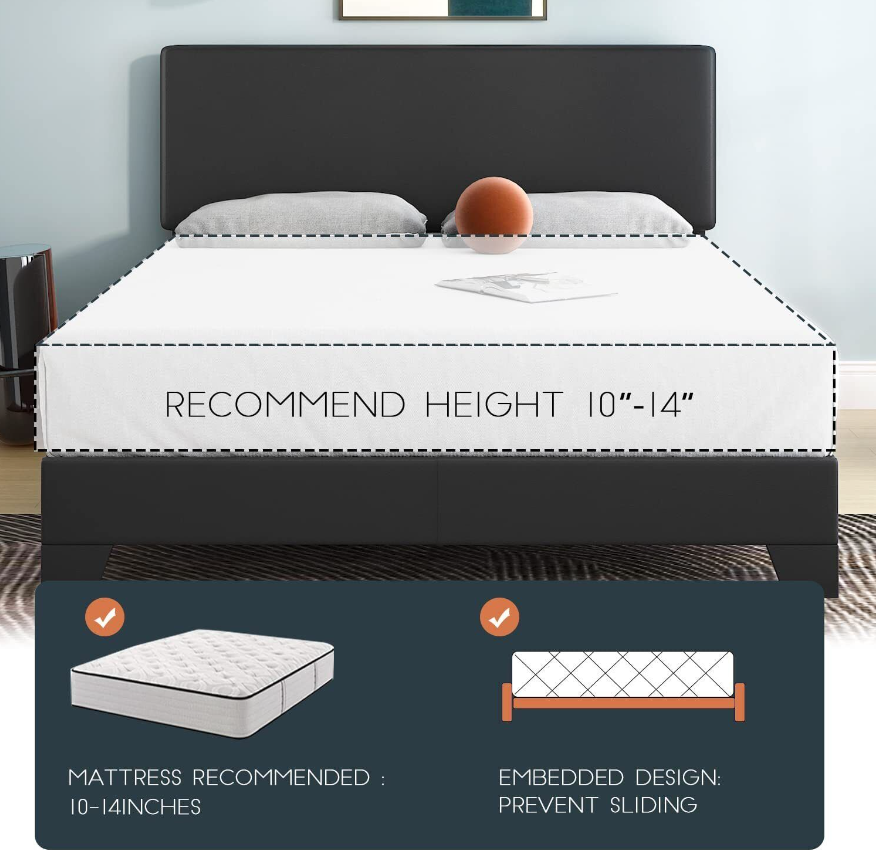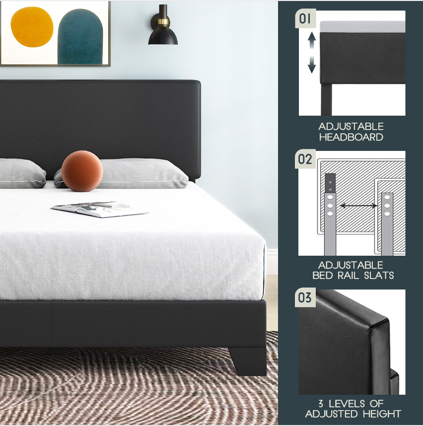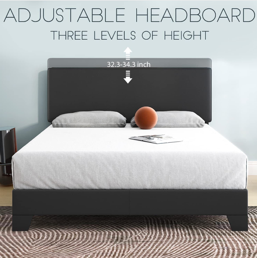 Upholstered Platform Bed Frame with Adjustable Headboard