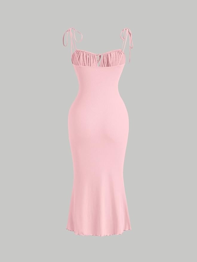 Verdusa Women's Ruched Knot Front Tie Shoulder Sleeveless Fishtail Bodycon Cami Dress