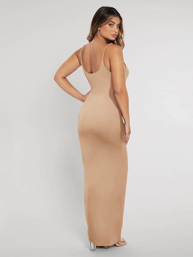 • Features: scoop neck, sleeveless, adjustable spaghetti strap, ankle length, maxi bodycon dress