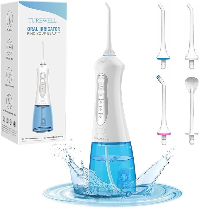 ★【300ML Detachable Water Tank & IPx7 Waterproof】300ml water capacity perfect for enough and uninterrupted oral dental flossing. Detachable design allows you to thoroughly clean the limescale inside the tank. Plus the IPX7 waterproof and can be used in the shower.