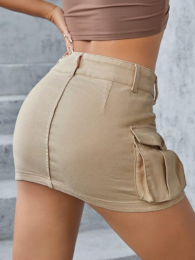 WDIRARA Women's Low Waist Button Bodycon Mini Cargo Denim Skirt with Pocket