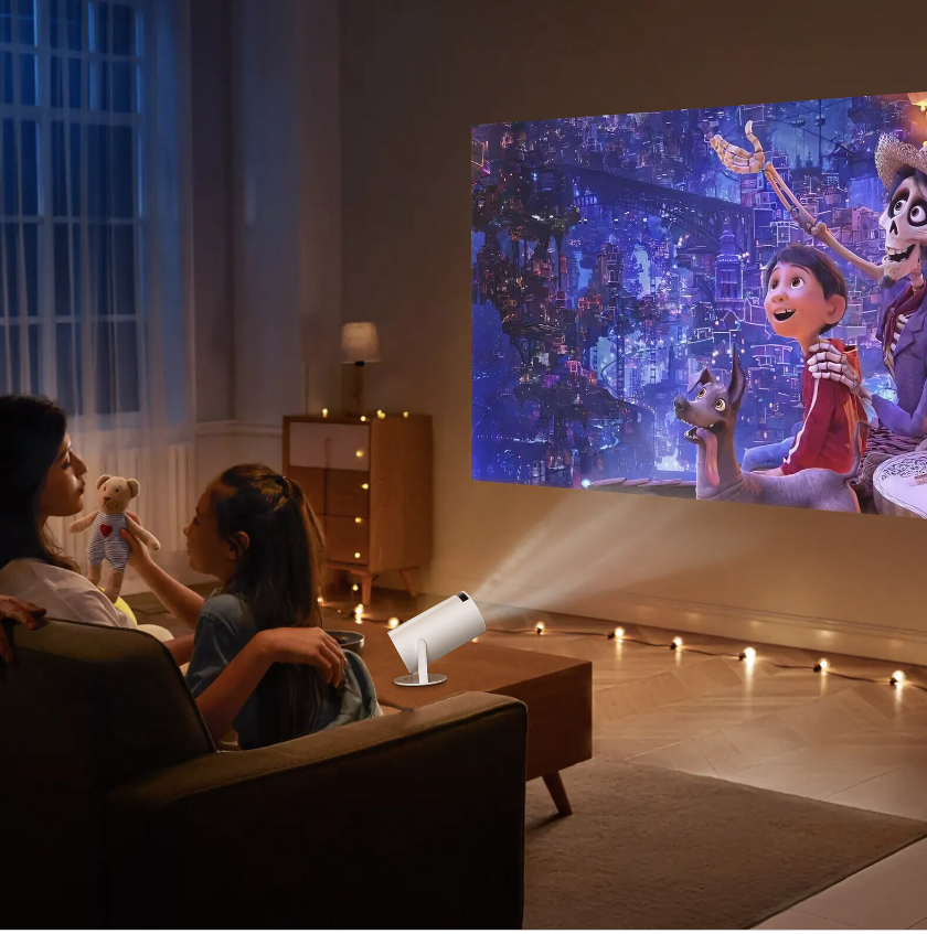 Adjustable 180° projection angle, allowing you to rotate it to any angle to play video or picture. Supporting automatic correction and manual focus.