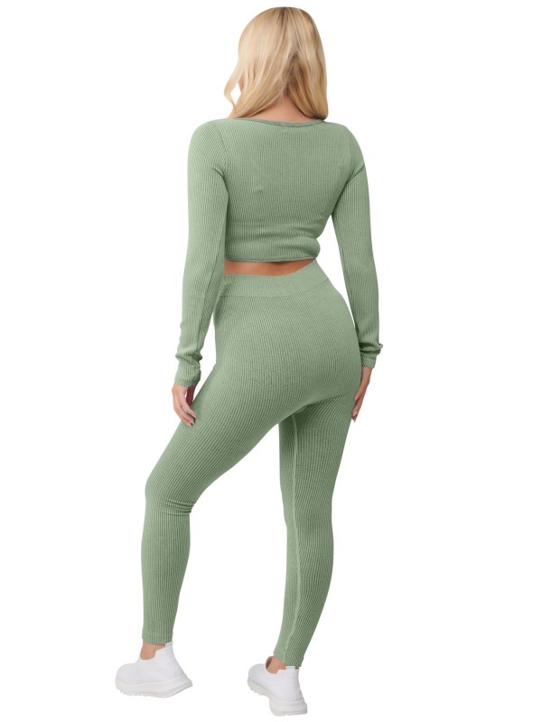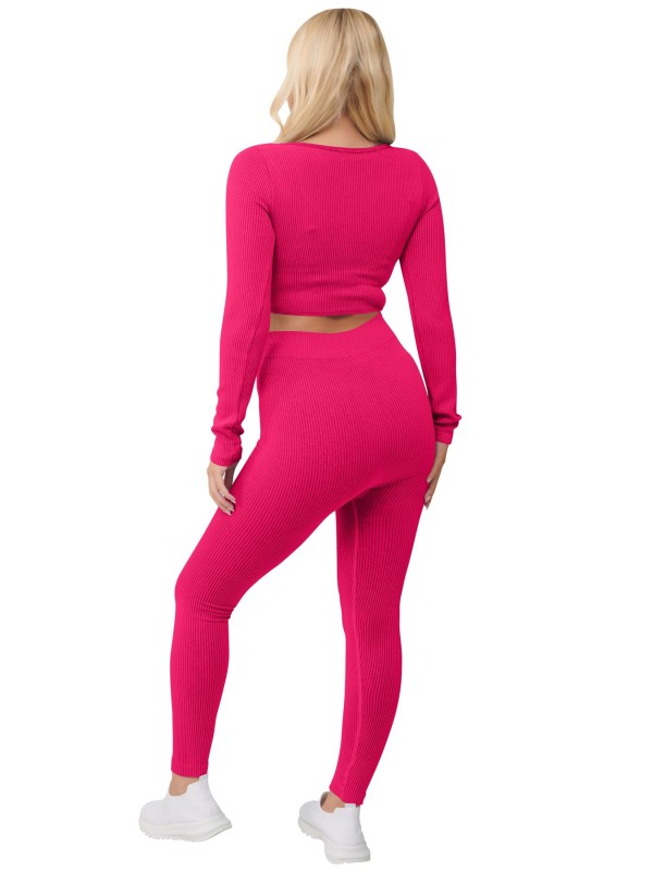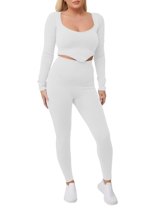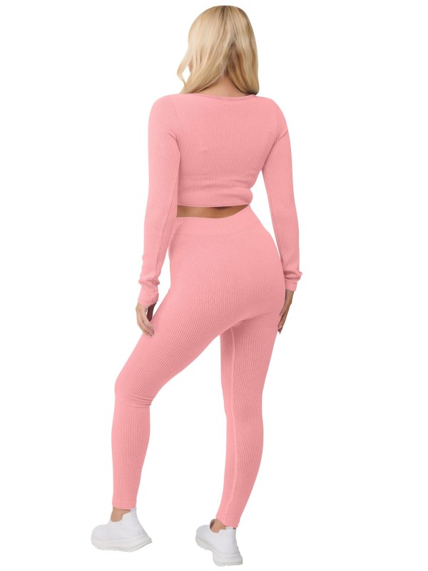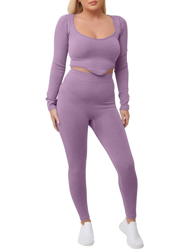 Womens Plain Ribbed High Waist Seamless Stretch Tracksuit 2 Piece Ladies Gym Set