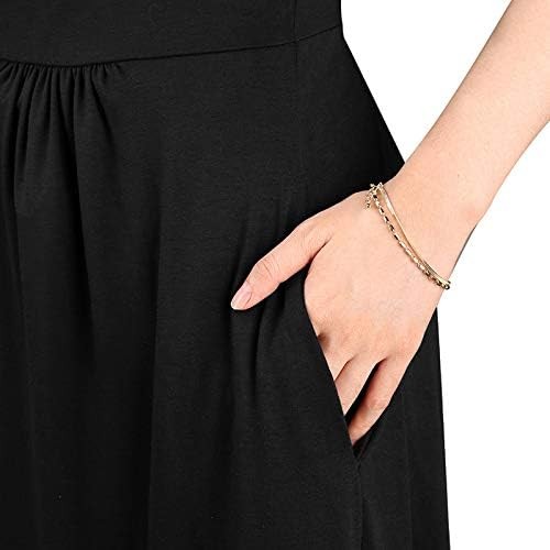 WOOSEA Women Sleeveless Deep V Neck Pocket Loose Long Dress Split Maxi Casual Dresses