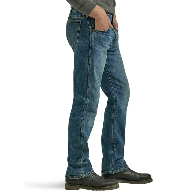 Take your look to a new level with the Wrangler® Men’s Slim Straight Jean. It’s made of a comfortable cotton blend with just a hint of stretch for added flexibility. It features a slim fit through the thigh and a straight leg opening. Plus, these slim-fit jeans for men come with the five-pocket styling and 'W' embroidery.