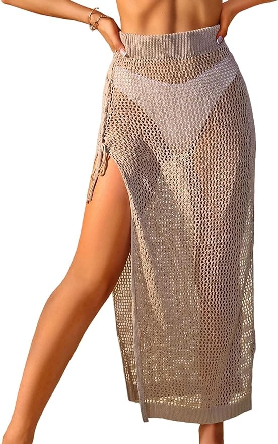 ZAFUL Women's Swimsuit Cover Up Crochet Sheer Knit Side Slit Maxi Beach Skirt Sarong