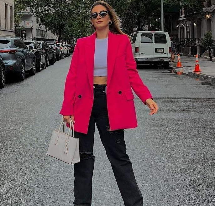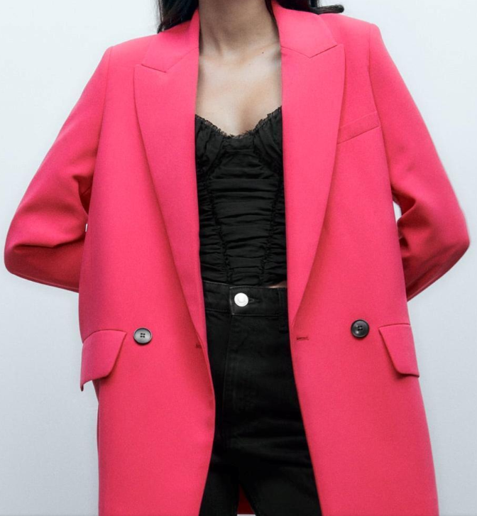 ZARA PINK FUCHSIA DOUBLE-BREASTED LAPEL COLLAR MUSCULINE OVERSIZED LONG BLAZER