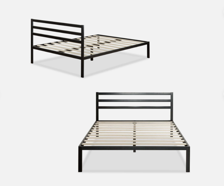 Made with bold style and optimum strength, the steel framed Mia Platform Bed with Headboard features a thick black metal frame and wooden slats that provide strong support for your memory foam, latex or spring mattress without the need for a box spring. And at 14 inches high, it offers over a foot of clearance under the frame for valuable under bed storage so you can tuck your extra boxes or bins neatly away. Crafted with clean lines and a streamlined look, this contemporary modern design looks classic and composed in just about any home. We ship this bed and everything you need to seamlessly assemble it in one slim and compact box that arrives at your doorstep. It’s all ready to be set up in under an hour with the help of a friend. And best of all, it includes a 5-year worry-free warranty guaranteed to keep you from ever losing any sleep over this purchase. Who would have guessed that stylish and strong mattress support could be this simple, convenient and affordably priced?